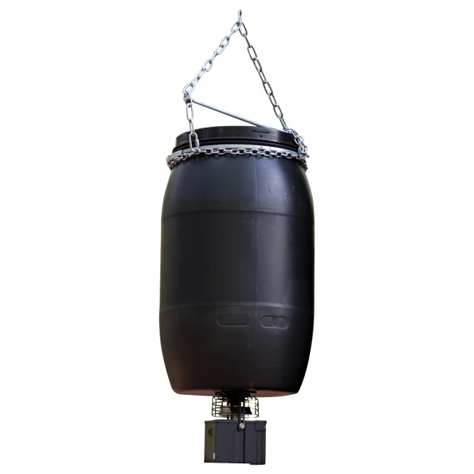 Automatic feeding station with very simple operation, flexible and individually adjustable. High suspension simply protects the feeding station from unwanted access by visitors to the hunting ground and from the effects of game. 6 feeding times per day adjustable. By selecting the spreading times and motor power, the output quantity can be adjusted to the feeding material and the spreading circle. Equipment: 12 V feeding station with bird and rodent protection (black) and display, spare fuse, 12V 7Ah battery, solar panels (1.5 W), 220 l sturdy HDPE drum (black), galvanised steel suspension device. Total weight: under 20 kg. Please observe the current legal situation!