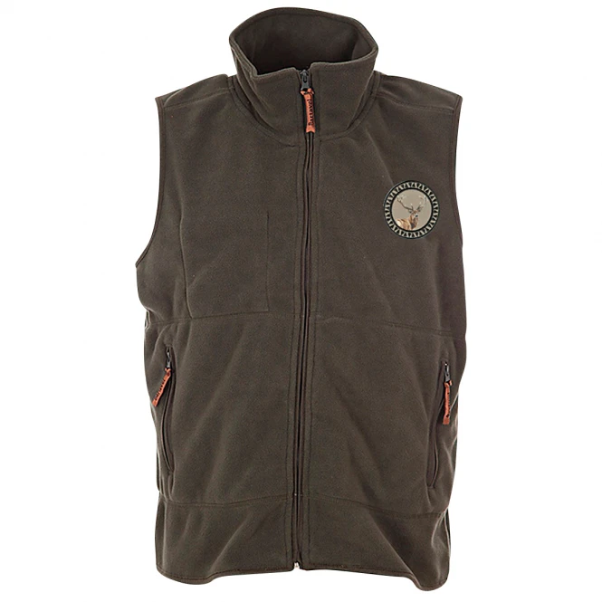 Soft micro fleece waistcoat with 2 side pockets and stag motif on the left chest. Colour: olive. Material: 100 % polyester.