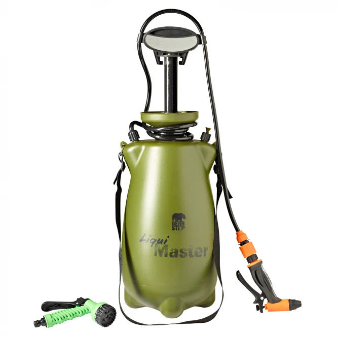 Manually operated pressure sprayer, ideal for the resulting field work. Simply use the pressure sprayer where you need fresh running water. 2 different sprayers (shower + power jet) are included. Capacity: 13 l. Height about 55 cm, hose length about 2 m.