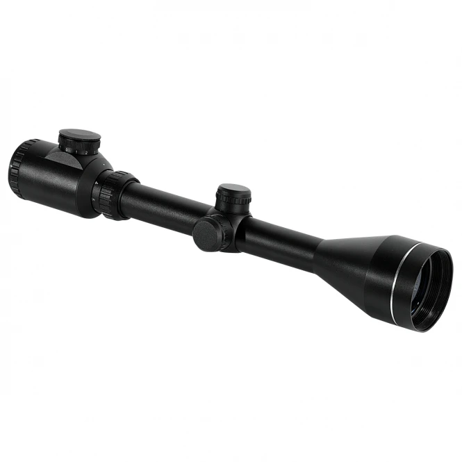 A variable, power hunting scope with a red duplex crosshair, which can be adjusted through 11 levels of brightness or completely switch off, allowing you to adjust it for low light conditions. Low light index: 20. The 3 to 9 magnification offers more flexibility regarding shooting at varying ranges and targets. With this all-round scope you are well kitted out for the hunt. The scope also features a nitrogen gas filling to prevent fogging up. The scope is of course water resistant and shockproof. It has an adjustable objective lens and a long standby battery life. The optimum eye relief is 90 mm. The scope body Ø : 25.4 mm. The objective Ø: 50 mm. Weight: 538 g. Total length 34 cm.