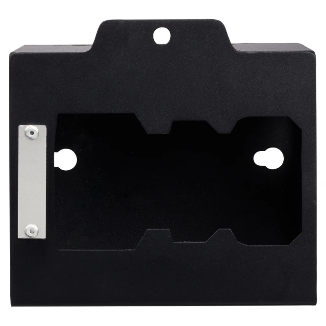 The metal housing is suitable for many game cameras and protects against theft and environmental influences. A padlock (not incl.) can be used for locking. Can be attached to trees by means of screws or strap. Incl. stainless steel wing screw. Dimensions: 16.3 x 16.0 x 10.0 cm. Weight: 850 g. Material: stainless steel.