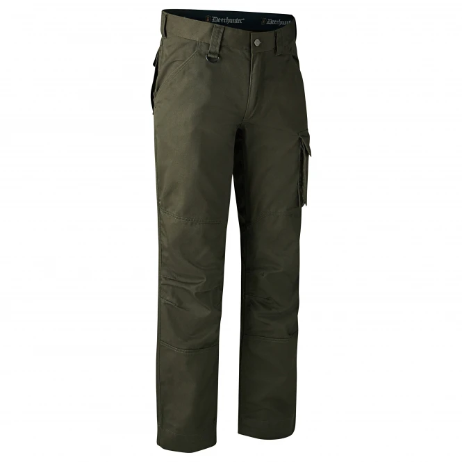 The Rogaland trousers are made from a polyester twill blend fabric and are ideal for spring and summer wardrobes. With their two back pockets with box pleat and flap and a thigh pocket on the left side, these trousers are functional for everyday tasks around the house and garden and can also be worn as lightweight trousers for trekking in the terrain. Two front pockets and pre-shaped knees complete the look and style of these classic trousers. The hem of the Rogaland trousers can easily be adjusted to your own leg length at home. Colour: olive.