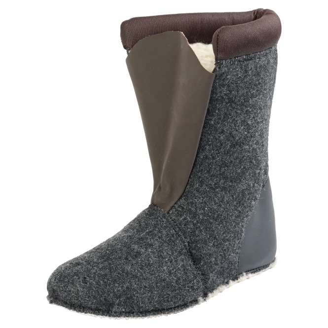 Warm boots with shafts made of high-quality nubuck leather. A coated wool insole provides additional heat. The removable inner shoe is padded particularly thick at the top for more comfort. The lacing runs over 3 metal eyelets and additionally as a conclusion about a tow hook. With non-slip treated sole. Colour: brown. Outer material: leather, lining and insole: textile, sole: other materials.