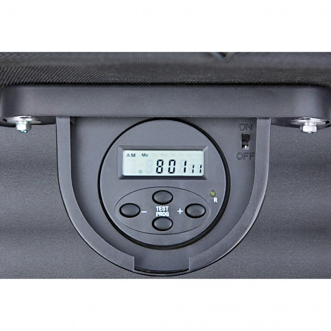 Foldable feeder with digital timer. The feeder is useful for feeding management. For feeding reliable and at fixed times, for example corn, crops. Ideal for avoiding damage, for feeding enclosure, at the feeding place and at Luder place. Suitable for wild boar, deer, small game, free running poultry and fish. Digital timer with up to 16 programmable feeding times per day. Foldable waterproof lining containers of high-strength nylon, Capacity 42 kg / about 40 liters, spreading width 6 m = 12 m in diameter – depending on size and weight of the Gaskets and height of the positioning of the feeder, operating on rechargeable lead battery 6V, 4 , 5 mA – (please order separately), the battery can optionally be loaded with solar panel (not included). Weight without battery: 1,300 g, with 6 V lead-acid battery: 2,040 g, Dimensions: Transport: 21 x 30 x 30 cm, ready: 75 x 30 x 30 cm, 2 sturdy nylon straps for secure suspension.