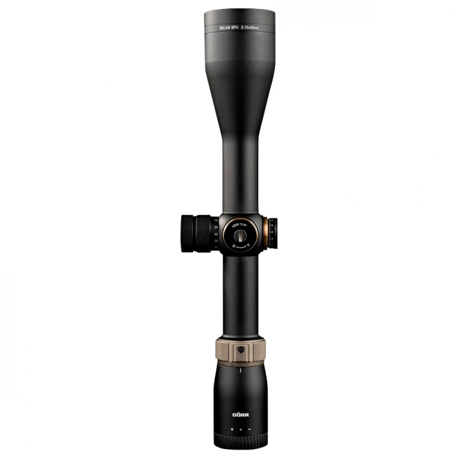 High-performance riflescope for use in twilight with 3 to 15x magnification and 50mm objectives. With twilight number: 12.25 – 27.39, field of view at 1,000m: 12.8m – 2.8m, parallax compensation: 10 – ∞ m, exit pupil Ø: 16.6 – 3.3mm, eye relief: 100mm, reticle: Mill Dot Red Cross, max. travel height/side: 60 MOA, tube diameter: 30mm, length: 36.3cm, weight: 704g.