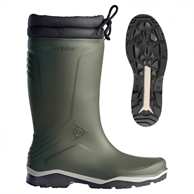 A warm lined winter boot with a synthetic fur lining and an inner sock. With a shock-absorbing midsole and a grippy outsole profile. Colour: olive/black. Upper material and sole: other material (PVC), lining: other material (faux fur).