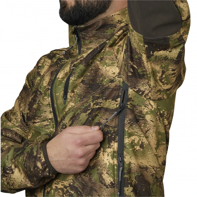 Best camouflaged in a modern cut. The pleasant stretch material offers ideal wearing comfort. With ventilation zippers under the armpits for air circulation and the breathable and moisture-wicking properties additionally prepare a comfortable wearing climate. With radio pocket on the left chest with double zipper for easy access and side pockets with zipper. The bottom hem is adjustable by drawcord. The thumbholes and elastic at the cuffs provide additional protection from the cold and wet. Colour: AXIS MSP®Forest. Material: 100% polyester.