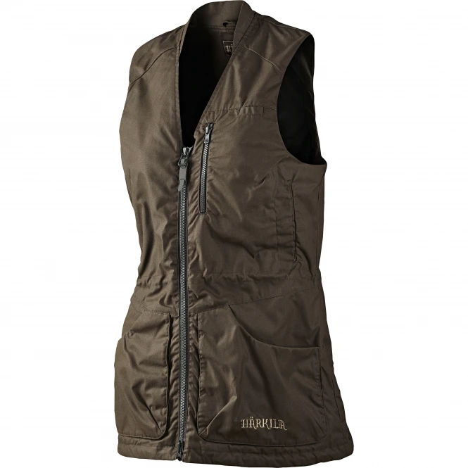Hunting vest with radio pocket, large front pocket and adjustable waist and waistband. Color: brown. Material: 65% polyester, 35% cotton.