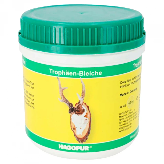 Provides for brilliant white trophies. Very economical – one tin is enough for 5 – 7 deer horns or 2 – 3 red deer antlers. Content: 400 ml.