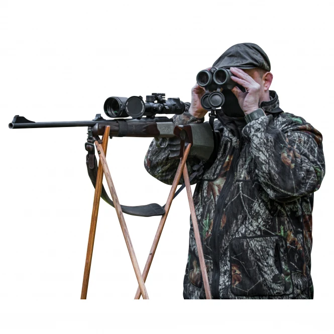 Made of ash wood with secure, felt-padded two-point support and 3-point magnetic locking system of the foot elements. The foot sections are equipped with a stainless steel base plate and a magnetic latch system so that it can be opened and closed silently in seconds. The legs are connected with a polygonal draw system for use as a single-leg aiming stick, double-leg aiming stick, stalking stick and as a resting stick for binoculars. Weight: approx. 700 – 900 g. Colour: light brown, sealed with protective wood stain. Length: 160 cm (suitable for a body height of approx. 170 – 180 cm).