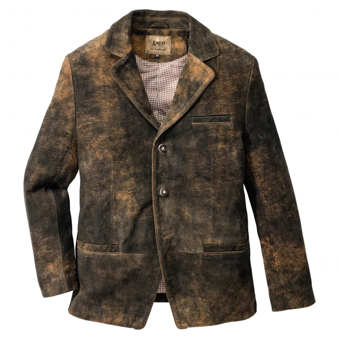 Noble leather jacket in a straight cut with small stand-up collar and lapel. Both to any festive occasion a high-quality companion, as well as sporty to jeans combinable. In the back is a comfort pleat with slit for ideal fit and comfortable wear. All buttons are in a beautiful horn look, which emphasizes the natural style of the jacket. With 2 front piped pockets and 1 piped chest pocket as well as 2 inside pockets in the checkered lining. Colour: dark brown. Upper: leather, lining: 100 % polyester.