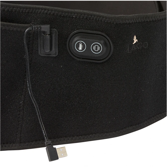 Has a heating function. The padded back area serves as a heating surface and distributes it pleasantly. Heat supply adjustable in 45 °C, 50 °C, 55 °C. USB operation. Circumference up to approx. 150 cm. Variable adjustable. Requires a power bank (item 218367, 219146 or 218370), not included. Please order separately. Material: 92 % polyester, 8 % elastane.
