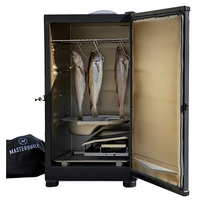 Perfect for beginners and advanced. You can achieve record-breaking smoking results in your own garden. Simply plug the smoker into the power supply, set the desired temperature on the digital display and the smoker will do the job for you. The patented drawer for smoking chips allows you to experiment with different flavours without having to open the door of the smoker. With 4 chrome-plated smoking racks for 4587 cm² cooking surface, digital control panel (for switching on/off, setting the temperature and cooking time), patented side filling with smoking chips (refill smoking chips without opening the door), completely double-walled insulated body. Power: 800 W. Dimensions: 84,5 x 52,0 x 50,5 cm. Weight: 19,3 kg. With 2 years manufacturer warranty.