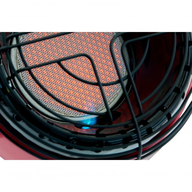 Heats up to 9 cubic meters. One button ignition/on function. Including adapter with 7/16” x 28 UNEF therads, for use with propane and butane blended fuels, accidental tip-over safety shutoff, automatic low oxygen shutoff system, connects directly to disposalbe propane or butane blended fuel cylinders, runs up to 6 hours. Dimensions: approx. 26 x 20.5 x 45.5 cm.