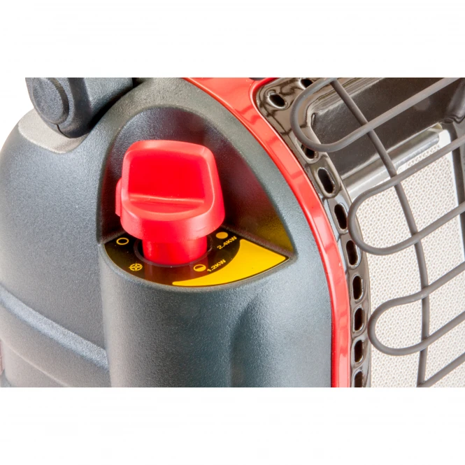 Heats up to 21 cubic meters. Swivel regulator and single control (high/low) heat setting. Including adapter with 7/16” x 28 UNEF therads, for use with propane and butane blended fuels, accidental tip-over safety shutoff, automatic low oxygen shutoff system, connects directly to disposalbe propane or butane blended fuel cylinders, runs up to 6 hours. Dimensions: approx. 20.2 x 35.5 x 37.6 cm.