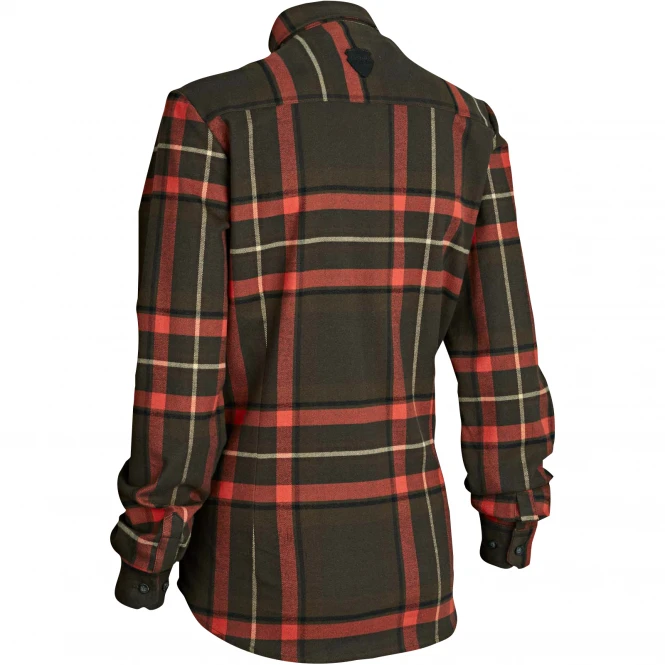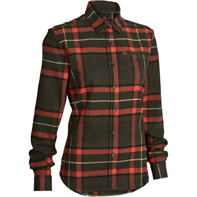 Made of a tightly woven and particularly durable cotton quality. An extremely functional and comfortable ladies shirt for practical use. With breast pocket. Colour: brown/red checkered. Material: 97% cotton, 3% elastane.