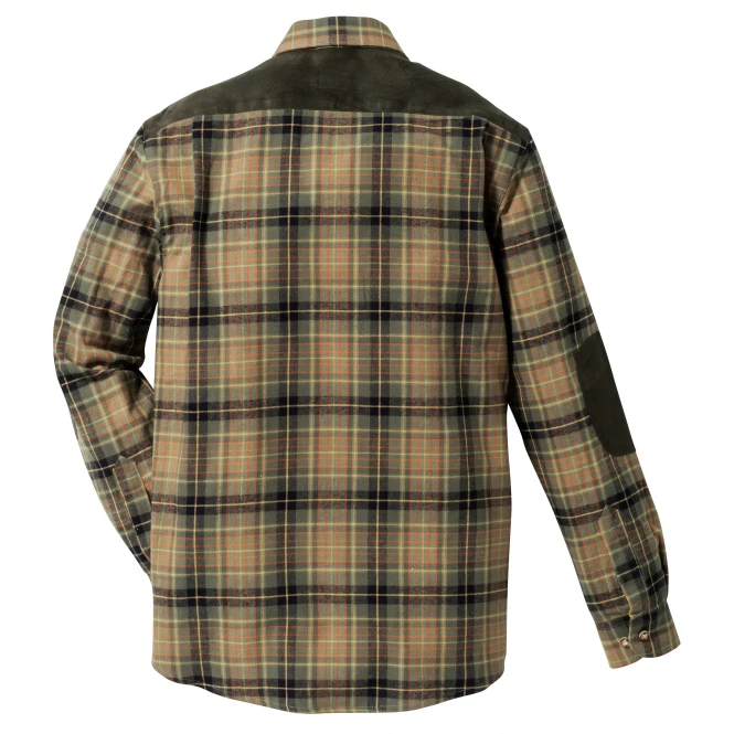 Modern men’s shirt with button-down collar. Set-off shoulder and sleeve sections are both fashionable and functional. Button-down breast pockets. With embroidery of a wild boar on the breast pocket. Colour: olive. Material: 100% cotton.