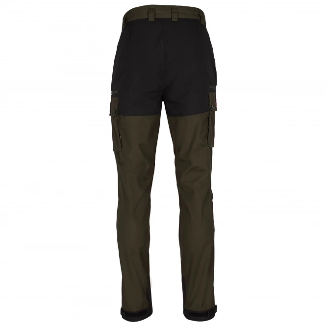 Comfortable, straight cut made of robust, windproof, highly water repellent and breathable material. With 2 slit pockets, 2 thigh pockets including cell phone pocket on the left side, reinforcements on seat and knee areas, UV protection and anti mosquito equipment. Extra water and dirt repellent thanks to the ecological impregnation Bionic Finish® Eco. Colour: moss green/black. Upper: 65% polyester, 35% cotton, contrast: 100% polyamide.