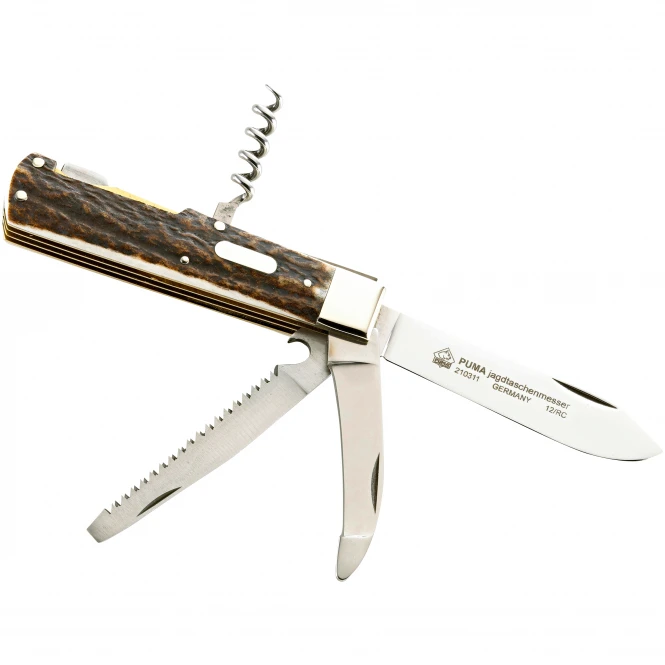With main blade made of 1.4110 stainless steel, double-toothed saw and breaker blade. The stag horn handle, nickel silver bolsters and hexagonal engraving plate complete the high-quality design. With lock-back mechanism. Handle: 9.4 cm, blade: 7.6 cm, total: 17.0 cm. Weight: 162 g.