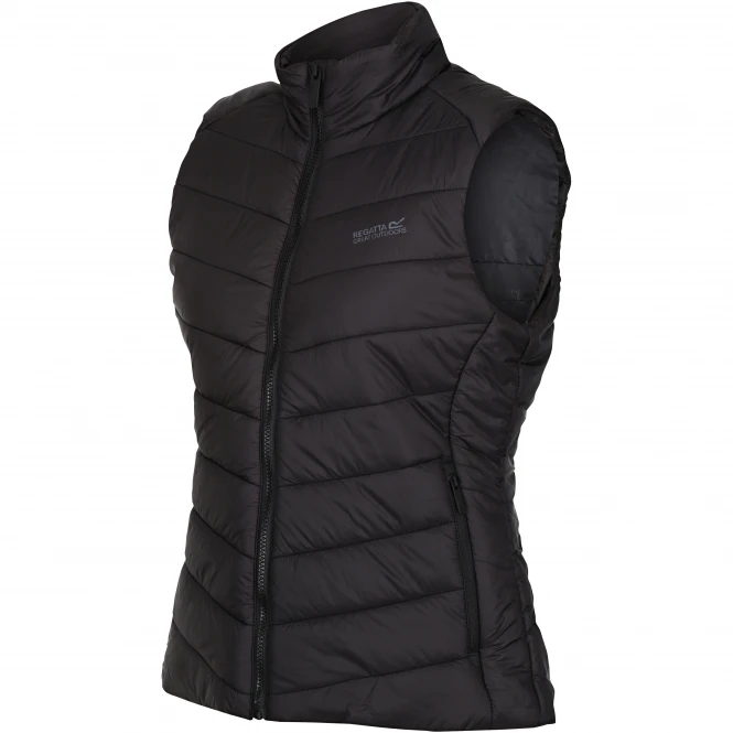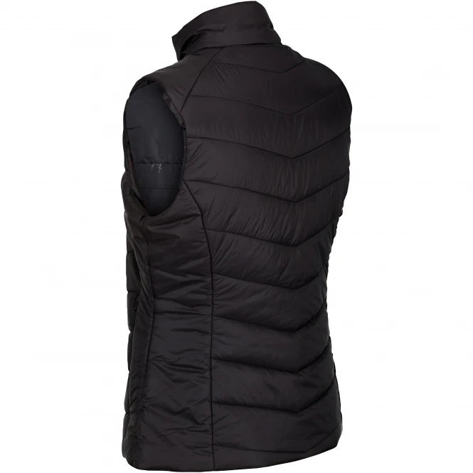 Lightweight, warmly padded quilted vest in a feminine cut equipped with a battery-powered heating system. When the temperature drops, activate the large heating element on the back and it warms you reliably. With 2 zippered pockets and automatic safety shut-off. Colour: black. Outer material, lining and padding: 100% polyamide.
